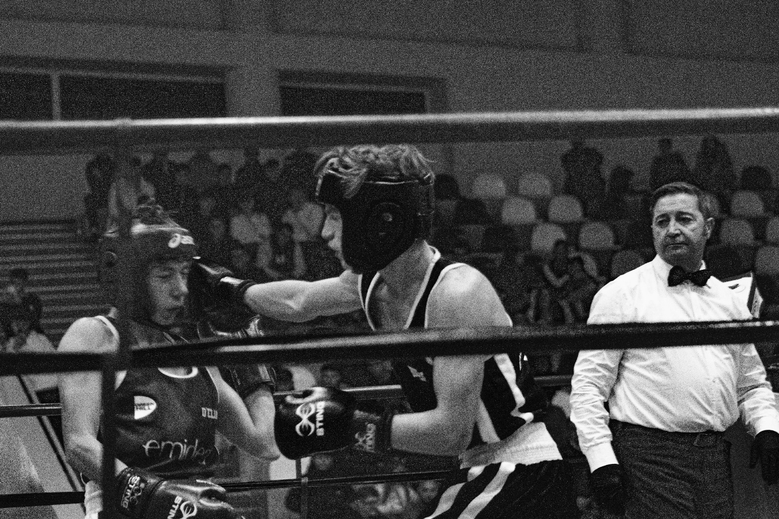 Non avevo mai assistito a un incontro di boxe dal vivo: fino ad allora la mia conoscenza di questo sport era limitata a ciò che trasmettevano le immagini in TV. Quella sera, però, ho potuto osservare da vicino la forza, la determinazione e il sacrificio di chi scende sul ring. I pugili, con i loro sguardi fissi e i movimenti decisi, mi hanno raccontato storie di coraggio e resilienza che vanno ben oltre la mera competizione. Ogni pugno lanciato, ogni sguardo intercettato, era un invito a catturare l’essenza di un momento carico di passione.